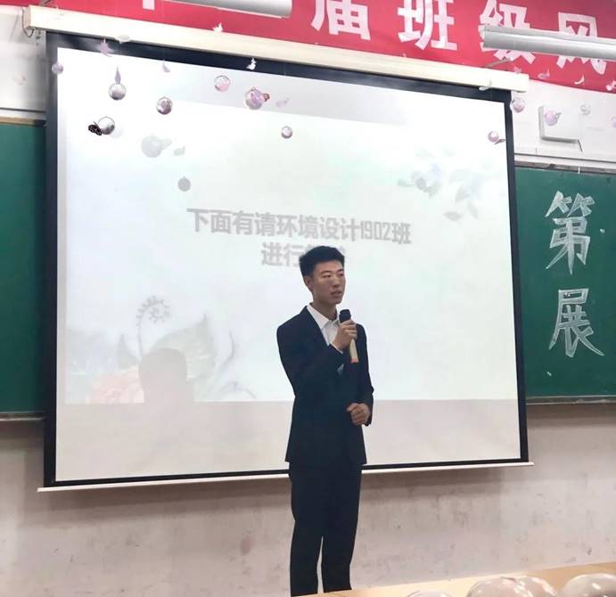 首先由环境设计1902班上台进行PPT(视频)展示及表演,环境艺术设计1902班在表演展示中,如苍茫宇宙闪烁着三十六颗灿烂夺目的明星。在其后紧张的答辩环节中,答辩人更是意气风发,对答如流,这样一个富有朝气和凝聚力的班级向人们展现开来。