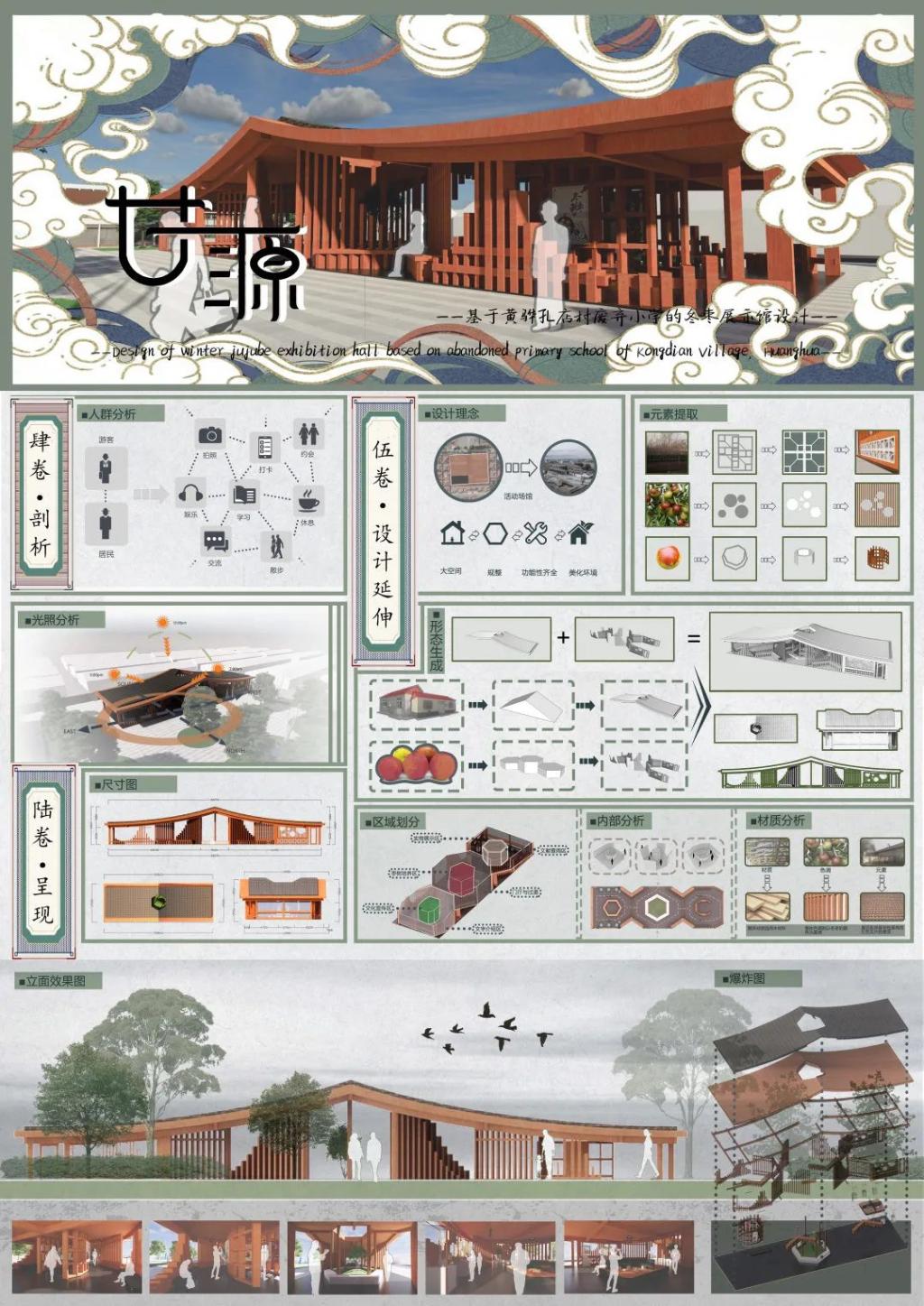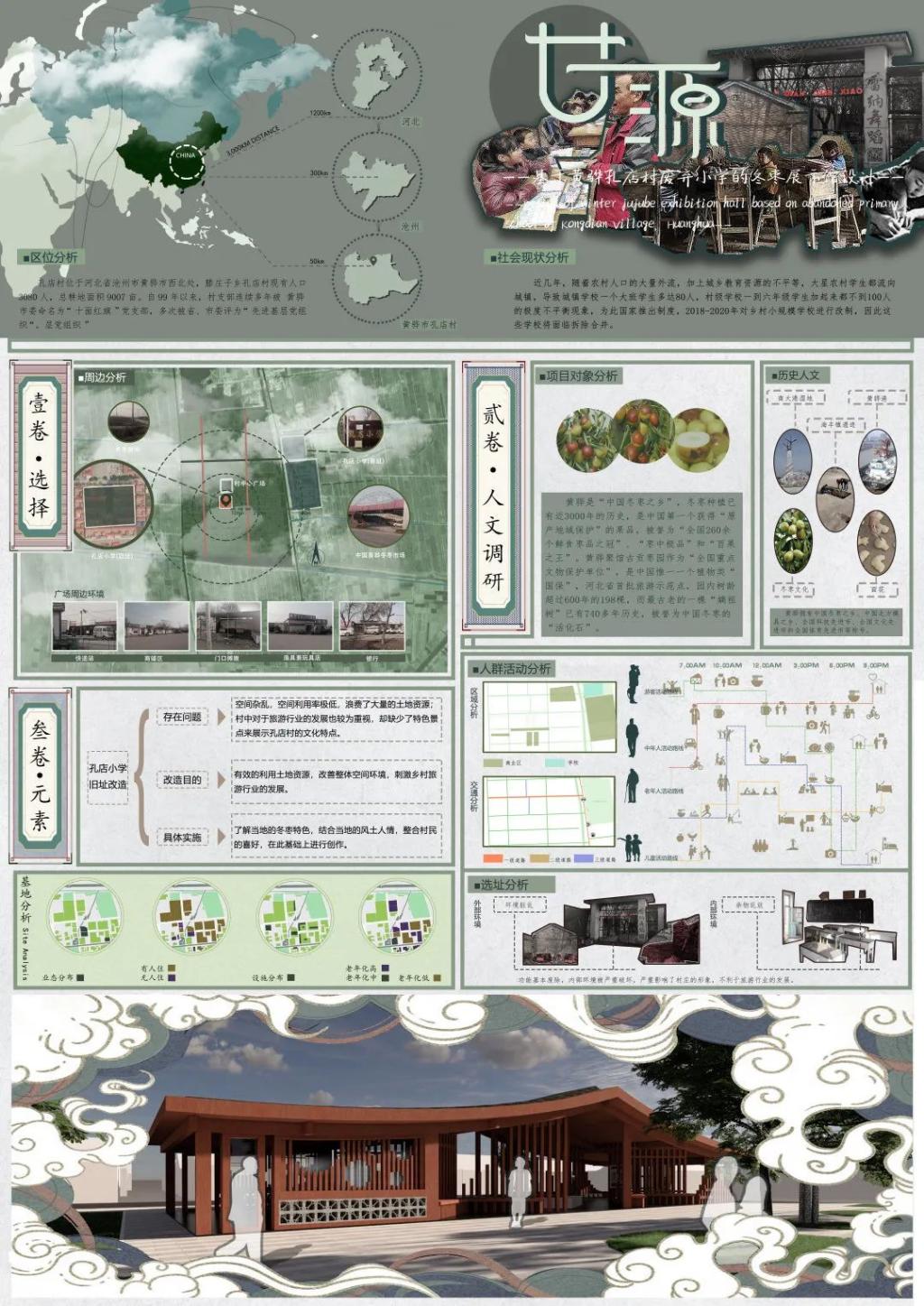作品名称:《甘源——基于黄骅孔店村废弃小学的冬枣展示馆设计》
