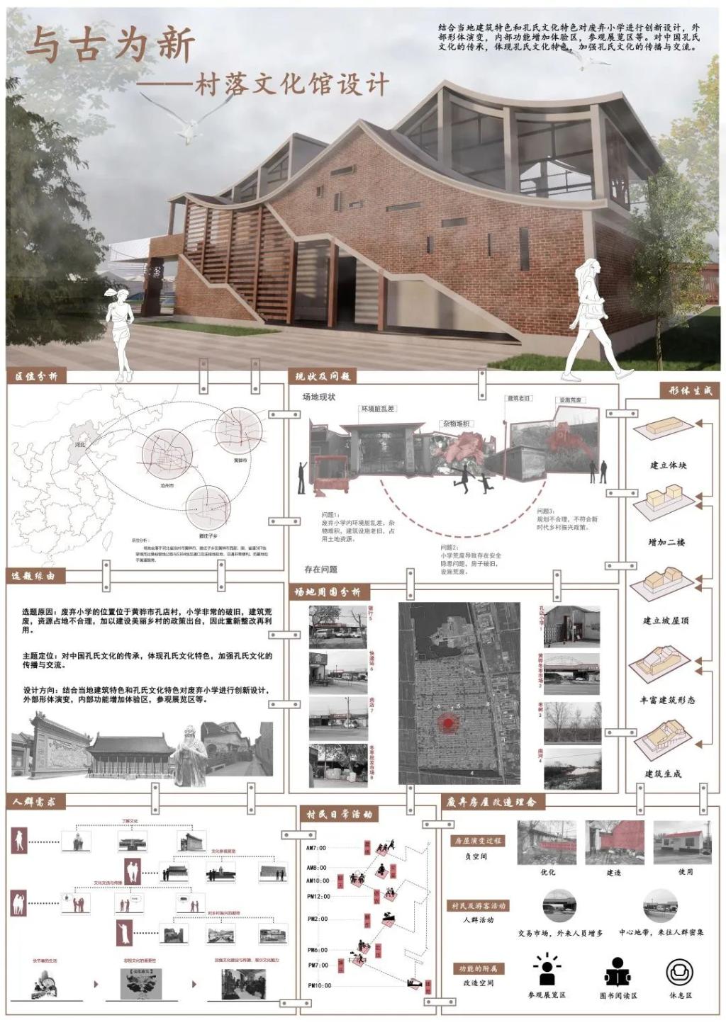 作品名称:《与古为新——基于黄骅市孔店废弃小学的村落文化馆设计》