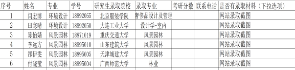 我院18级学子考研取得佳绩,共有六名同学闫宏博、田寒晴、陈怡婧、李远方、郜伊雯、付晓莹分别被北京服装学院、大连工业大学、重庆交通大学、山工建筑大学、天津城建大学、广西师范大学知名高校录取。