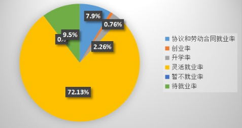 22届毕业生整体就业率为90.8%。其中,协议和劳动合同就业21人,占比7.9%;灵活就业189人,占比72.13%;升学读取研究生6人升学率2.26%。