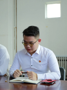 刘展辰老师与田雨潇老师亲切地同每位学生交流,对各位毕业生党员取得的成绩表示充分肯定,对同学们顺利完成学业、即将迎接新身份表示祝贺;刘展辰老师提出,希望毕业生党员在今后的工作学习中继续发挥觉员的先锋模范带头作用,不断强化党性修养,勇立时代潮头,在前进道路上踔厉奋发、砥砺前行。田雨潇老师提出殷切嘱托,无论是现在或是将来,要始终爱党爱国,牢记党员肩负的责任与义务,有理想、有目标,脚踏实地的走好每一步路,不负青春、不负韶华。努力在实现中华民族伟大复兴中国梦的生动实践中放飞青春梦想,以“强国有我”的信念,以更加昂扬的姿态建功新时代,努力成长为堪当民族复兴重任的时代新人。