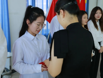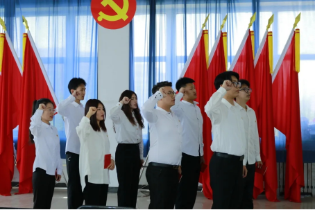 会议第二项,由毕业生党员唐乾容带领宣誓,在场学生党员重温入党誓词,进一步坚定党员们的入党初心,激励全体毕业生党员在未来的学习和工作中始终按照党员的标准严格要求自己。毕业生党员纷纷表示,无论未来身在什么岗位,一定会铭记入党初心,牢记为人民服务的宗旨,坚定报效祖国的理想抱负。