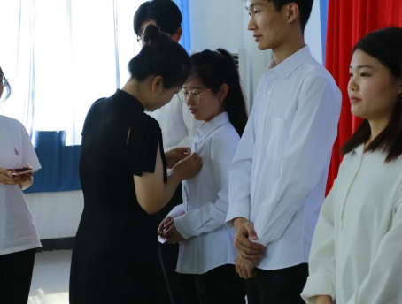 会议伊始,刘展辰老师为毕业生党员颁发党章佩戴党徽,并寄语:同学们在未来,应当始终不忘初心,以党员的标准严格要求自己,牢记党组织的嘱托,发挥榜样作用,做到为人民服务,成为国家的栋梁之材。