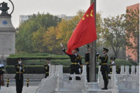 上午7时整,国旗护卫队迈着整齐划一、铿锵有力的步伐走到旗台。伴随庄严雄伟的《义勇军进行曲》,鲜艳的五星红旗冉冉升起,在朝阳的映照下熠熠生辉。在场师生庄严肃立,精神饱满,面向国旗行注目礼,齐唱国歌,表达着对祖国母亲的美好祝愿和对沧州交通学院的无限期许。
