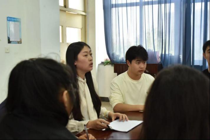首先,各位面试者依次进行自我介绍。他们详细介绍了自己在学校的学习情况、志愿服务,对未来的规划以及加入团组织的意愿和理由。面试进行过程中,各位评委都在认真的审核着每一位面试者的资料,对他们的自我介绍进行了解。