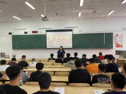 为了星空(中国)2020级毕业生积极响应征入伍的号召,普及应征入伍的相关政策和流程,提高应征入伍兵员的文化素质,推进新时代国防建设和军队现代化水平,我院于2024年5月23日在通方楼A501召开2020级毕业生征兵宣讲会,本次宣讲会由辅导员吕娅妮主持,2020级全体男生参与。