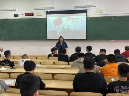 参军入伍对于个人成长、国家安全和民族复兴的重要意义。她还鼓励同学们积极响应国家号召,将个人的理想追求融入到国家的发展大局中,通过参军入伍实现自我价值和社会价值的双重提升。