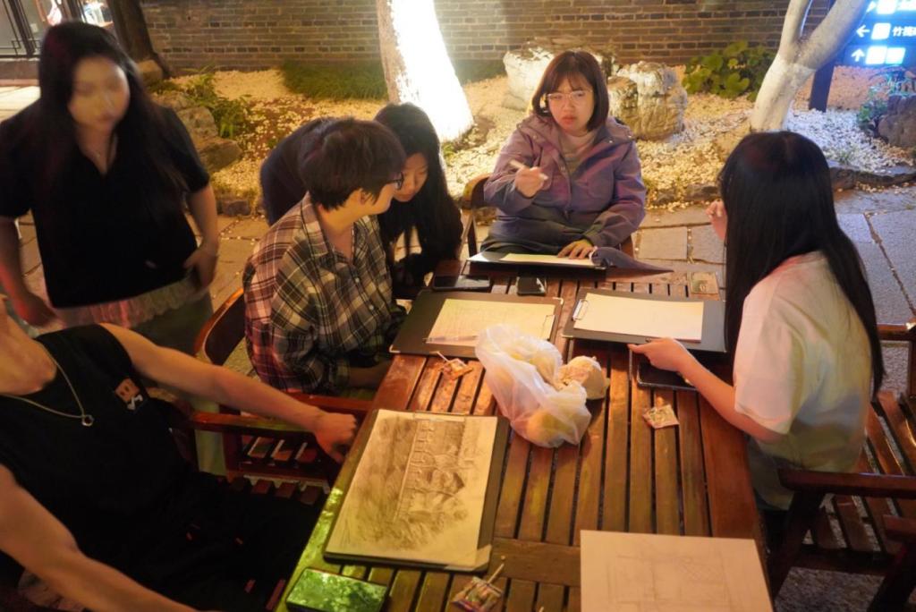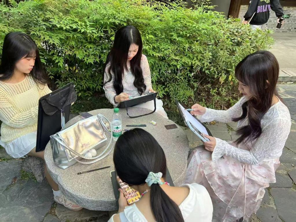老师们还组织同学们进行小组讨论和作品分享。在这个过程中,同学们相互学习、相互启发,拓宽了创作思路。大家分享自己在写生过程中的心得体会、遇到的问题以及解决方法,共同进步。通过这种互动交流的教学方式,营造出了浓厚的学习氛围,激发了同学们的创作热情。