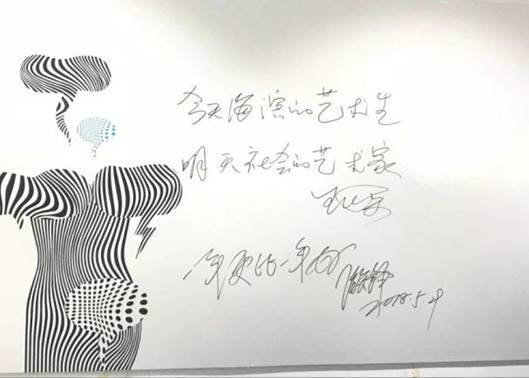 王化深院长认真观看了每一份毕业设计作品,并称赞每一份作品都有他的独到之处,王院长在签名墙上为毕业生留下“我不懂艺术,但是我喜欢艺术”表示对大家的肯定以及鼓励。