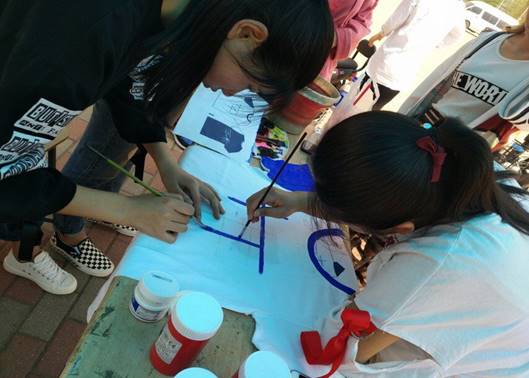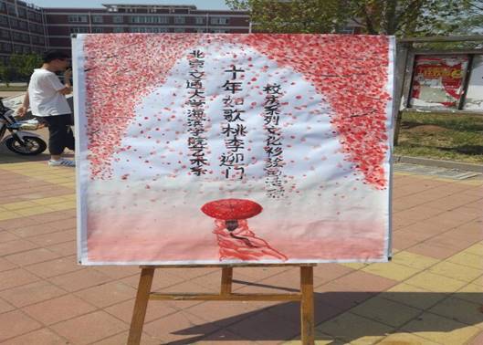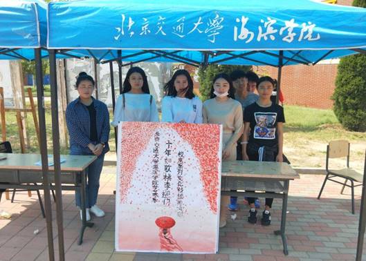 为迎接北京交通大学海滨学院十周年校庆的到来,艺术系学生会于2018年4月19日中午在一期二期食堂门口举办了面向海滨学院全体师生的文化衫作品彩绘活动。