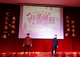 晚会共有十四个节目,环艺1701班为大家带来活力四射的开场舞,四位主持人正式宣布晚会开始。