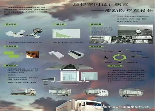 2017届毕业生霍妍希、张玲同学毕业设计作品——流动医疗车设计组获得“临时与可移动建筑与空间”,流动医疗车设计组获得“临时与可移动建筑与空间”优秀奖。在摘到老师高军、刘蕊、葛莉、吕宁老师的指导下,经过半年的反复修改设计方案,不断攻克设计难题取得优秀成绩,展现海滨学子风采,为大学四年画上完美的句号,在此也感谢给位老师的辛苦付出。