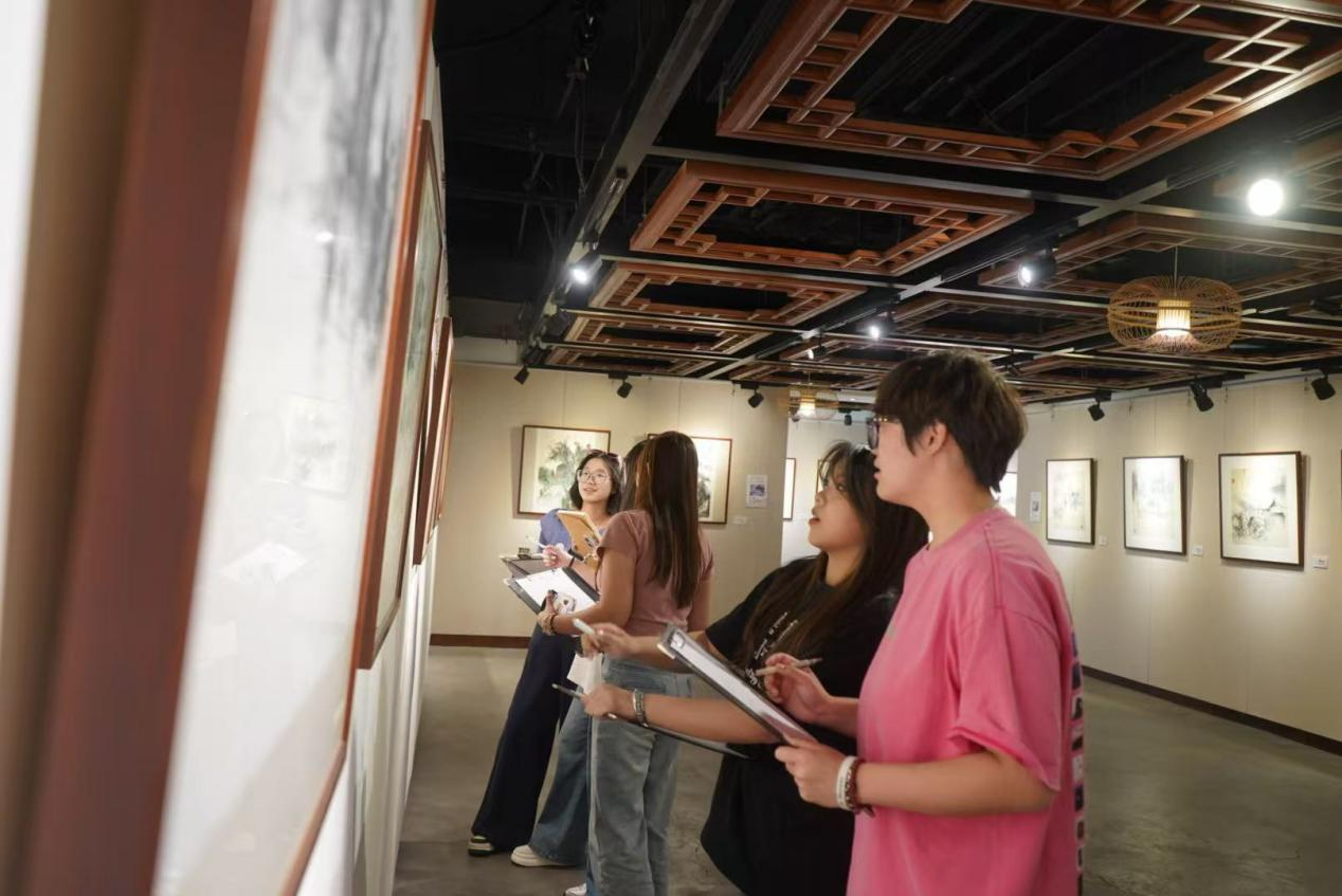 在现场教学中,老师们针对不同的写生场景和创作需求,给予同学们细致入微的指导。在描绘惠山古镇的古建筑时,老师会讲解古建筑的结构特点、比例关系以及如何运用线条和色彩来表现其质感和历史沧桑感。在清明桥和南长街,老师则引导同学们关注水乡的光影变化、色彩层次以及如何营造画面的空间感和意境美。在拈花湾,老师与同学们一同探讨禅意美学在艺术创作中的体现方式,启发同学们从独特的角度去观察和表达。