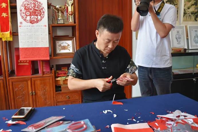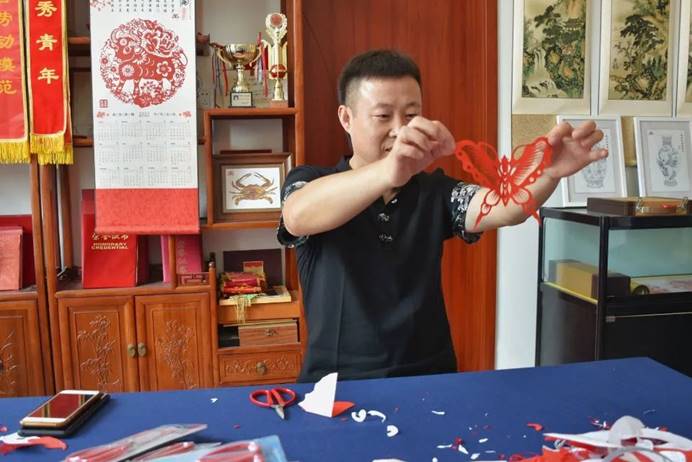 白老师向大家展示了他精湛的剪纸技术,一张普通的红纸,在老师精雕细琢下,变成了一只栩栩如生的蝴蝶。