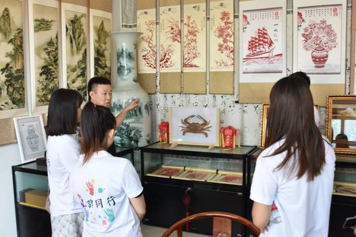 为拓宽大学生视野,锻炼大学生意志,增强社会适应性和归属感,同时宣扬中华优秀传统文化,传承红色技艺。7月8日上午,星空在线注册阳光天使志愿服务团来到黄骅市东常庄村韩宝菊剪纸艺术中心进行参观学习。