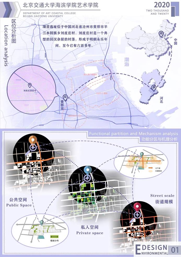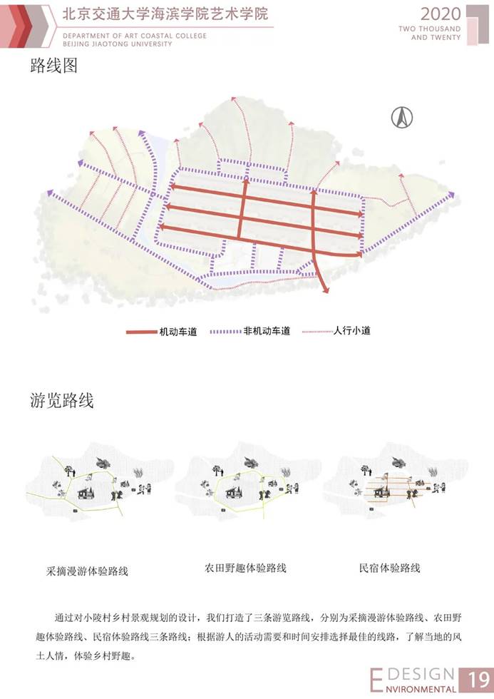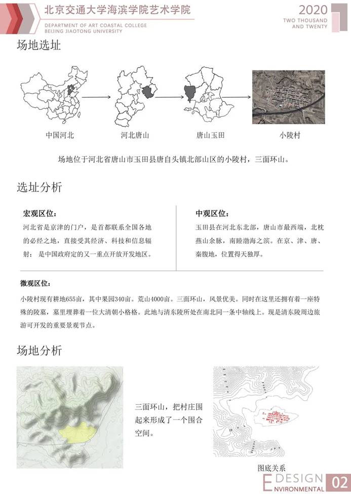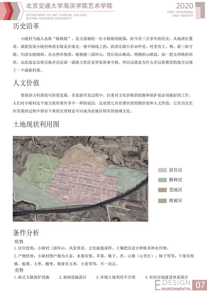 设计说明:此次设计旨在研究如何利用特定村落的历史文明加以延续。我们通过对小陵村实施景观介入的方式,利用田野景观活化村落。并且利用现状条件在挖掘小陵村潜在价值的同时对它现有的历史文脉进行延续并加强保护。