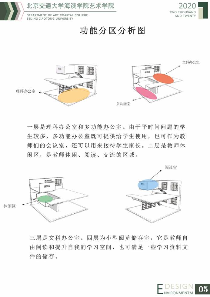 设计说明:学校教师办公空间设计不仅能够体现对教师创造性的尊重,同时彰显着学校先进的教育管理观念。本方案通过对传统教师办公空间改造设计,改变原有空间主体结构,利用错层空间与“俄罗斯方块”组合家具,扩大了原有空间面积,增添了空间趣味性,丰富了教师们的办公生活。