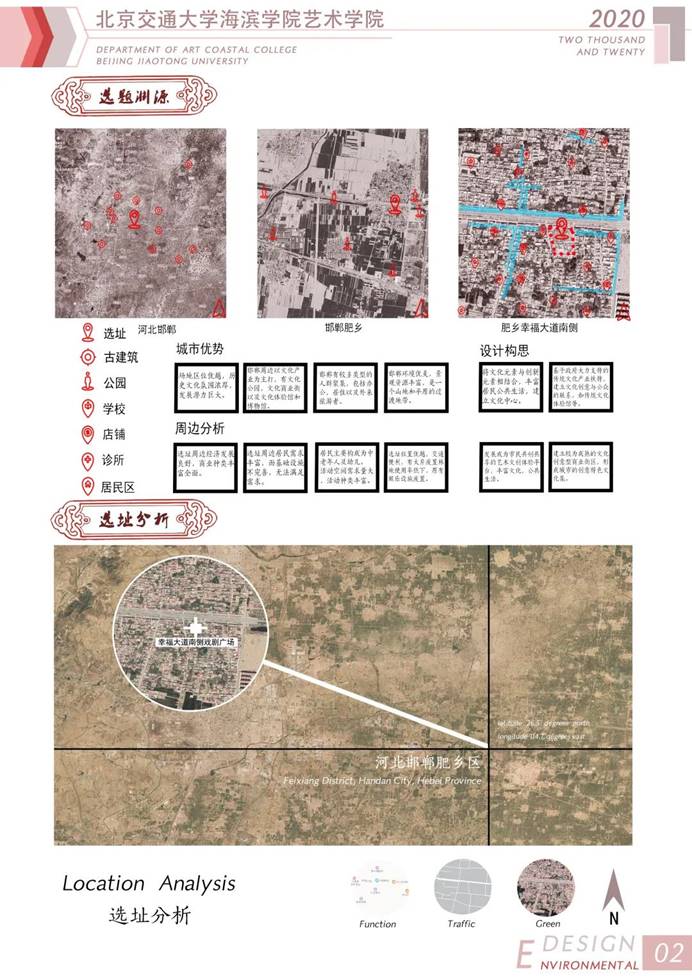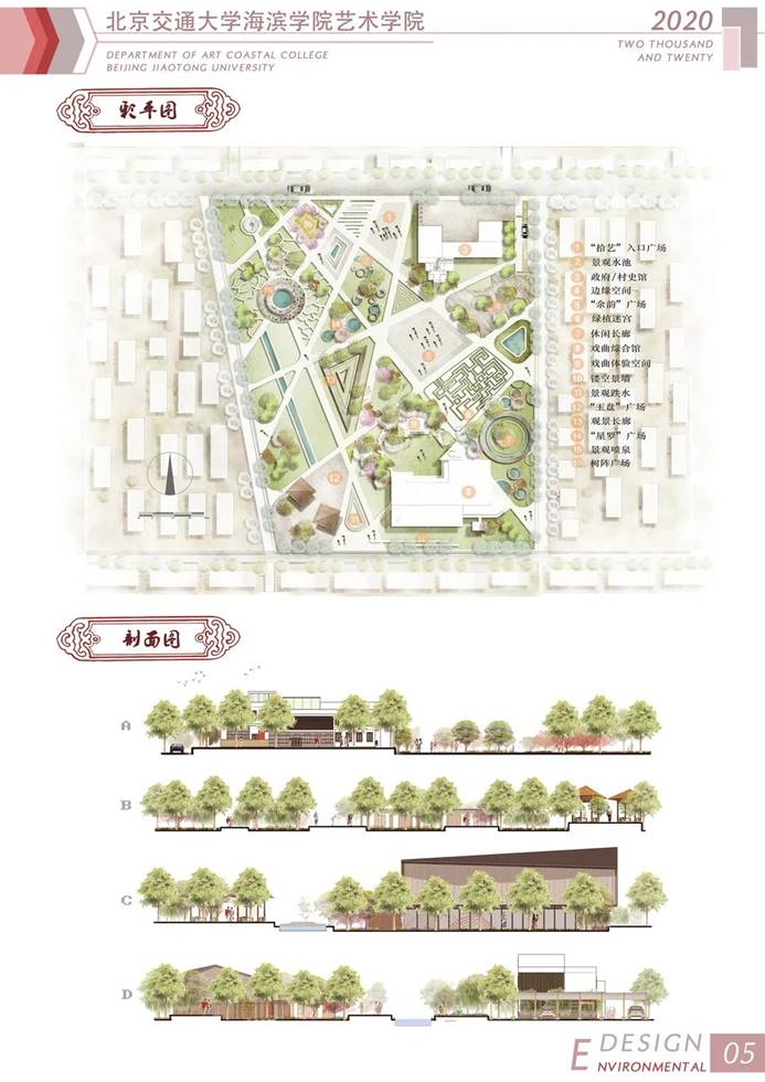 设计说明:声生不息——基于邯郸文化背景下街戏景观空间的设计探索为弘扬中国戏曲文化,我们将场地进行了再设计。此次设计灵感源于成浯“凿壁借光”和戏曲水袖。运用“凿壁借光”中的光线交叉区分场地内功能分区,通过水袖的运动形态从中提炼图形进行分解重组形成景观场景及小品。综合两个灵感来源设计出此次戏曲景观空间。