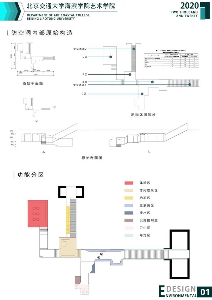 设计说明:利用已经废弃的防空洞加以修复并且改造,将其改造成一个集展览与体验于一体的红色精神纪念馆,设计主要采用“新旧结合”的手法,将“新设计”,与“老建筑”适宜的融合为一体,保留老一辈人感情寄托的同时顺应时代的潮流,适应新一代人的审美需求。在弘扬红色文化的同时,也将扩展城市公共服务设施。