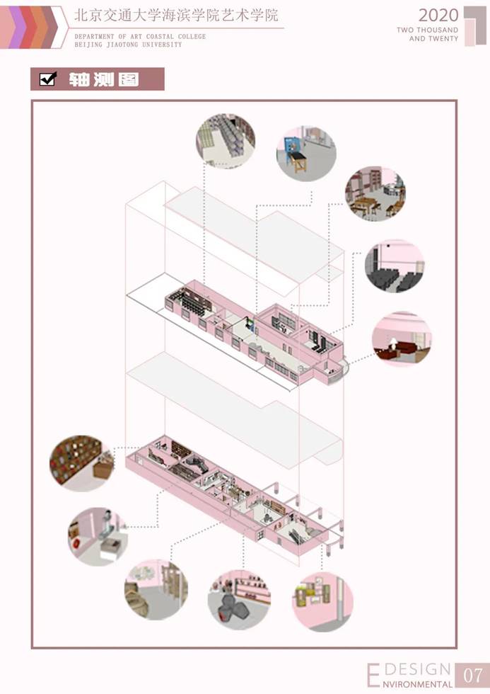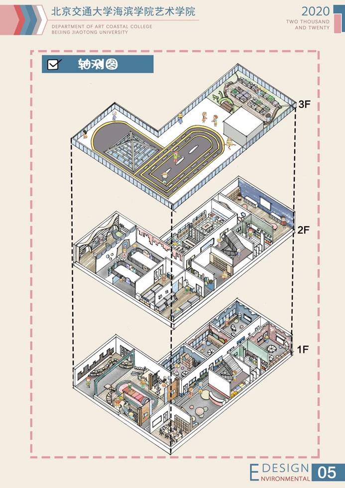 设计说明:本次毕业选题针对中国家庭式儿童托管中心进行研究改造,通过对儿童身心发展的特点及成长规律进行细致剖析,对儿童托管中心内部的功能分区进行重新划分,可划分为学习区、休息区、室内活动区、用餐区、娱乐区等。最终设计出一所符合当下儿童快乐生活学习成长的室内外结合的儿童托管中心。