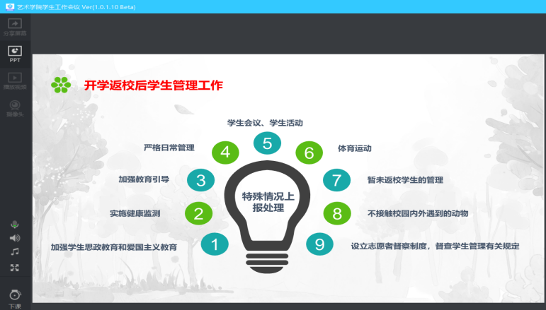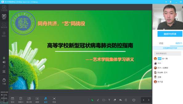 全体辅导员线上学习《高等学校新型冠状病毒肺炎防控指南》,按照防控指南的相关要求,内容从基本常识、防控措施、管理工作、心理关注四个部分,涉及基本防疫知识、返校前后的管理、心理方面的帮扶等多个层面,进行了集体学习和研讨。