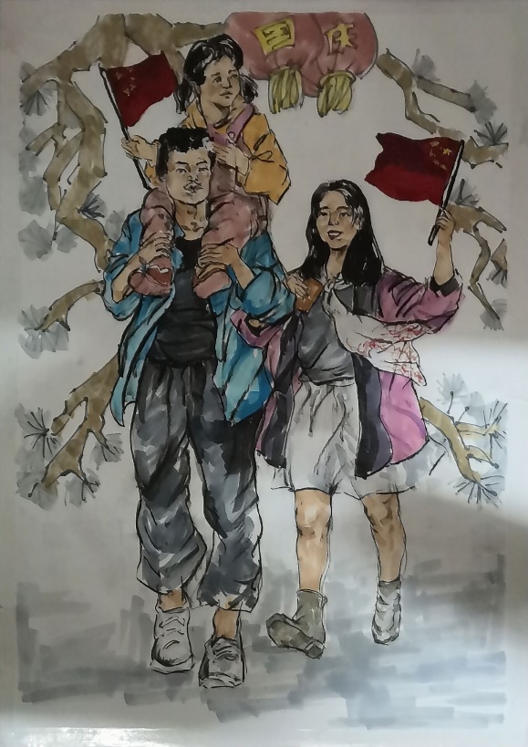 作品描述:淳朴幸福的一家人,风雨同载,手举的红旗坚守着祖国的信仰,万家欢腾的节日祝祖国人民日渐富强!