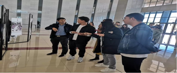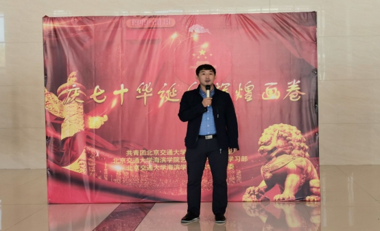活动伊始,主持人介绍一下“艺术墙系列活动”的过程和意义,本次活动致力于我们专业特点打造的一项学风建设项目。通过命题艺术,教师指导,学生创作、作品展览,设计艺术墙、平台宣传这样一条主线逐步开展,本次画展以“庆七十华诞·汇峥嵘画卷”命题,采用十人行导师制,完成的优秀作品成果将在校园主要区域巡展,起到红色主题教育意义。