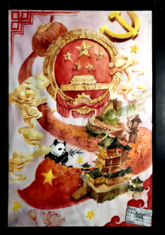 我院将本次获奖作品统一收录上墙展览,星空(中国)的“墙”应当是全方位打开的墙,是通过视觉可以让全校学生直观感受到作者意愿及精神的方式,画笔饱蘸深情,笔墨挥洒豪迈。一幅幅栩栩如生的图画里,新中国70年建设的伟大成就,在师生笔下盛装绽放;本次艺术墙展览不仅仅是一次视觉上的盛宴更是艺术学子积极向党,不忘初心,热爱祖国精神的体现,艺术学子在此祝福祖国国泰民安、祝福华夏儿女前程似锦!