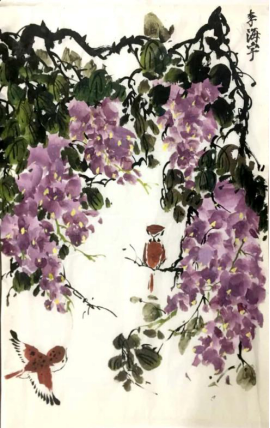 作品简介:紫藤花的茂盛绵密犹如远处飘来的一团紫气祥云紫藤花开,小鸟飞翔,紫气东来祥瑞降,庆祖国七十华诞!