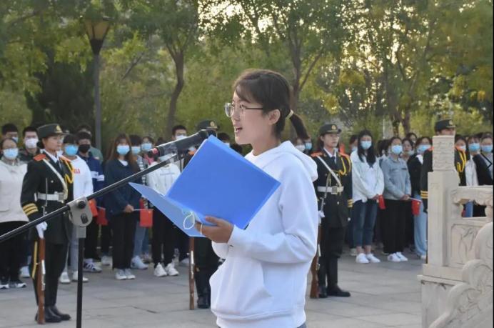 接下来由计科20级王小雅同学进行国旗下的讲话,她的演讲中,提到了感恩,作为一名青年,我们应该感恩现在拥有这么美好的生活,感谢父母老师的教导,我们应该更加珍惜现在来之不易的幸福生活,更加努力,去创造更多价值。