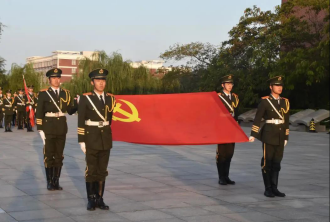 第一项升国旗奏国歌结束后,学生党员代表面向鲜艳的党旗,大家列队整齐,举起右手,在党旗下庄严宣誓。在大家一句句的誓言中,听到了大家的对国家的热爱,听到了国家的未来。